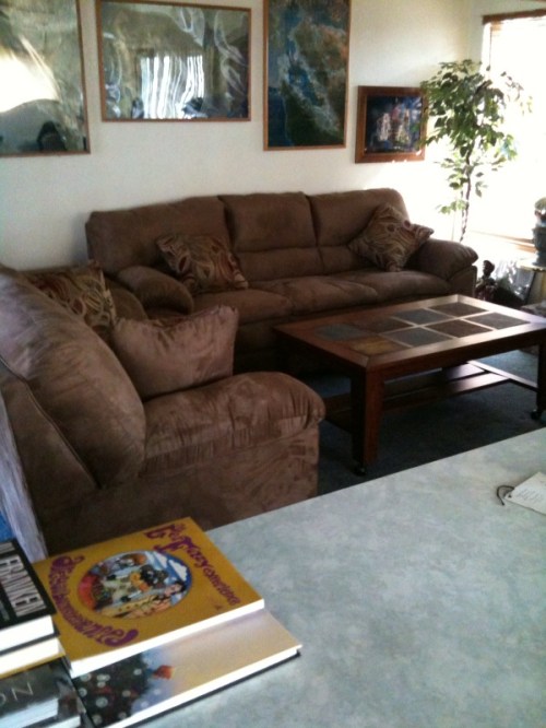 I bit the bullet, dinged the credit card, and bought new living room furniture this week. The 40 year old couch just wasn’t cutting it anymore! (Really. 40. I have pictures of me at 3 or 4 years old sitting on it. Family heirloom thing, you know)