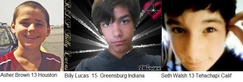 Billy Lucas, 15, of Greensburg Indiana, hanged himself.